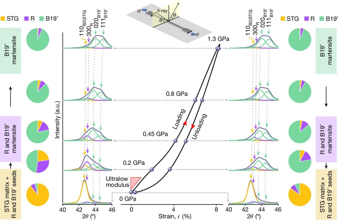 图4. 原位XRD分析DS-STG合金类聚合物弹性的来源。© 2024 Springer Nature
